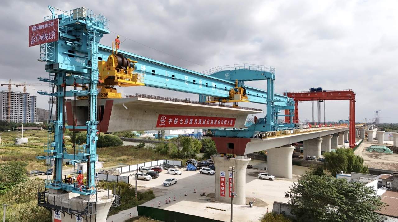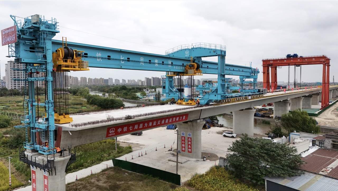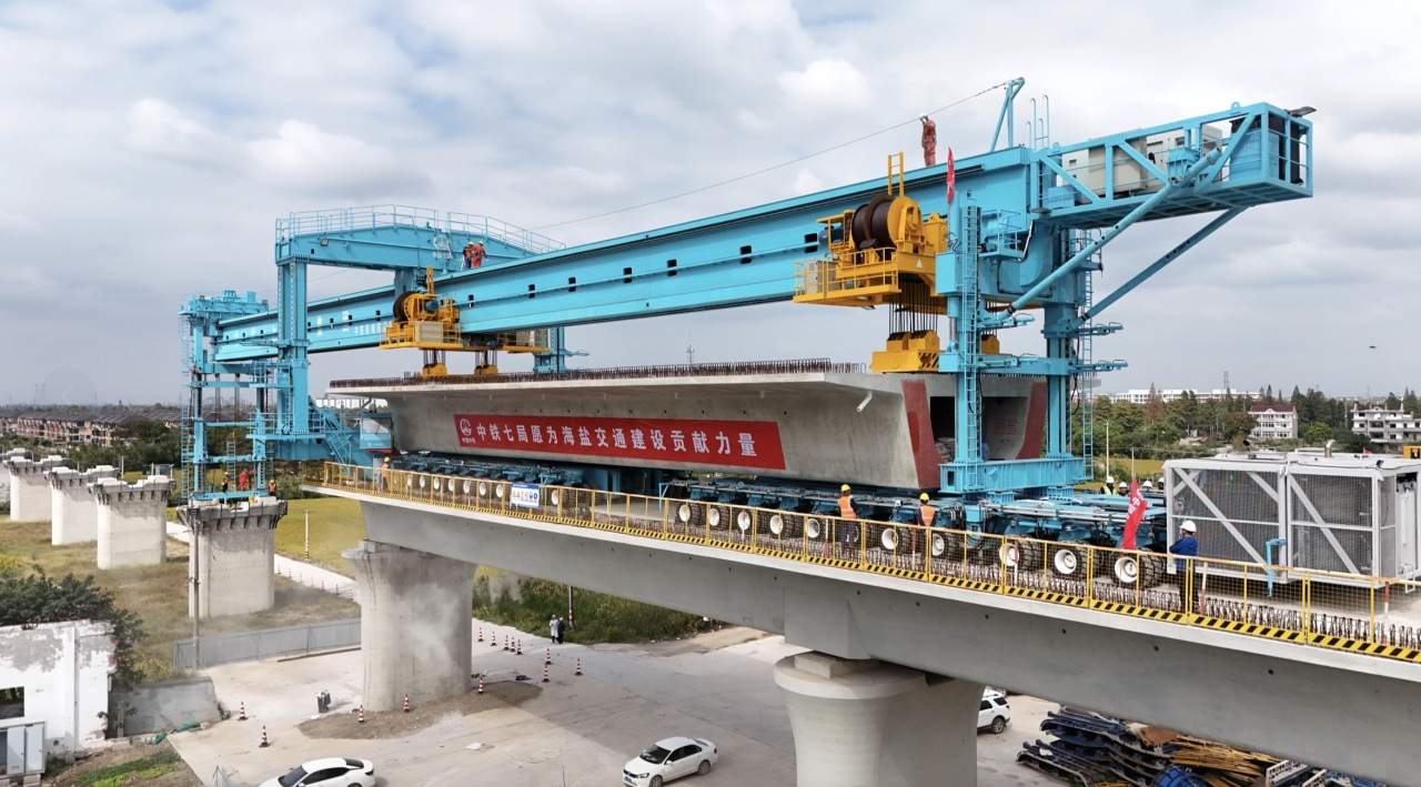 10ÔÂ22ÈÕÉÏÎç£¬Ëæ×ÅÒ»ÉùÁîÏ£¬ÖÐÌúÆß¾Ö¼ÜÁº×÷ÒµÈËÔ±²Ù×÷JQSD1000ÐͼÜÇÅ»ú£¬½«Ò»¿×³¤32Ãס¢ÖØ697¶ÖµÄÏäÁºÎÈÎÈÂäÔÚͨËÕ¼Îð®¸ßÌúº£ÑÎÌØ´óÇÅE¶Î874#-873#¶ÕÉÏ£¬±êÖ¾×ÅÖÐÌúÆß¾Ö³Ð½¨µÄͨð®¸ßÌúվǰ¢ù±êÏäÁº¼ÜÉèÊ©¹¤ÕýʽÆô¶¯¡£
