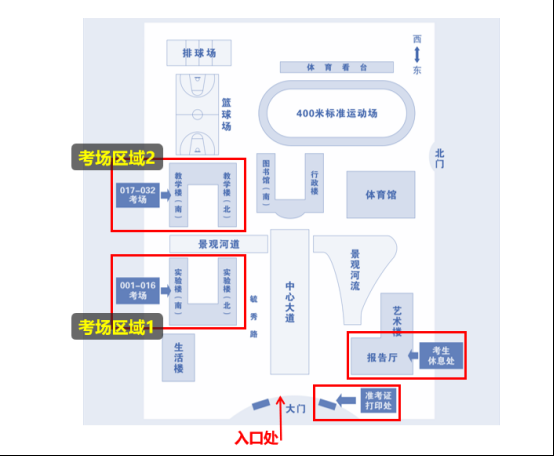¿¼Éú½øÈ뿼µãÒÔºó£¬×¢Òâ²é¿´Èë¿Ú´¦ÕÅÌùµÄ¡¶¿¼³¡°²ÅÅʾÒâͼ¡·£¬¸ù¾Ý×¼¿¼Ö¤ÉϵĿ¼³¡ºÅ²éÕÒ¶ÔÓ¦µÄÂ¥²ãºÍ½ÌÊÒ¡£